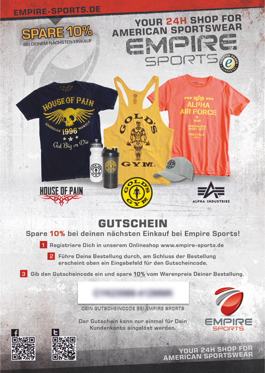 New flyer for Empire Sports with Leon Schmahl and great american sportswear brands.
